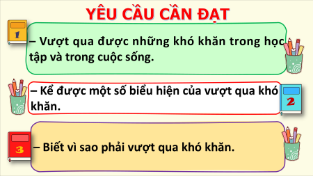 – Biết vì sao phải vượt qua khó khăn. Khởi động Yêu cầu: