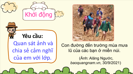Quan sát ảnh và Con đường đến trường mùa mưa chia sẻ cảm nghĩ