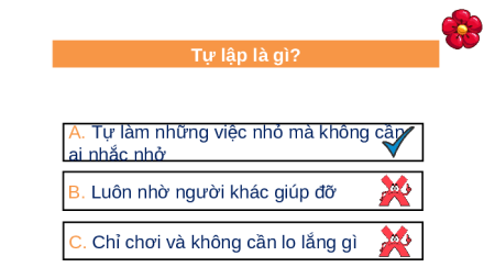 BƯỚC VÀO TIẾT HỌC MỚI! Hoa tốt bụng Hoa điểm tốt Hoa biết ơn Hoa ngoan ngoãn Hoa lịch sự Hoa chăm chỉ Hoa gọn gàng Tự lập là gì?