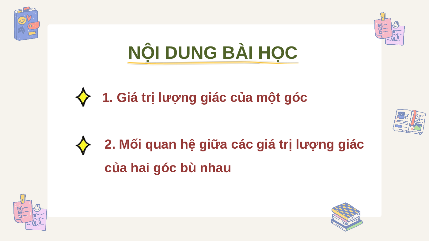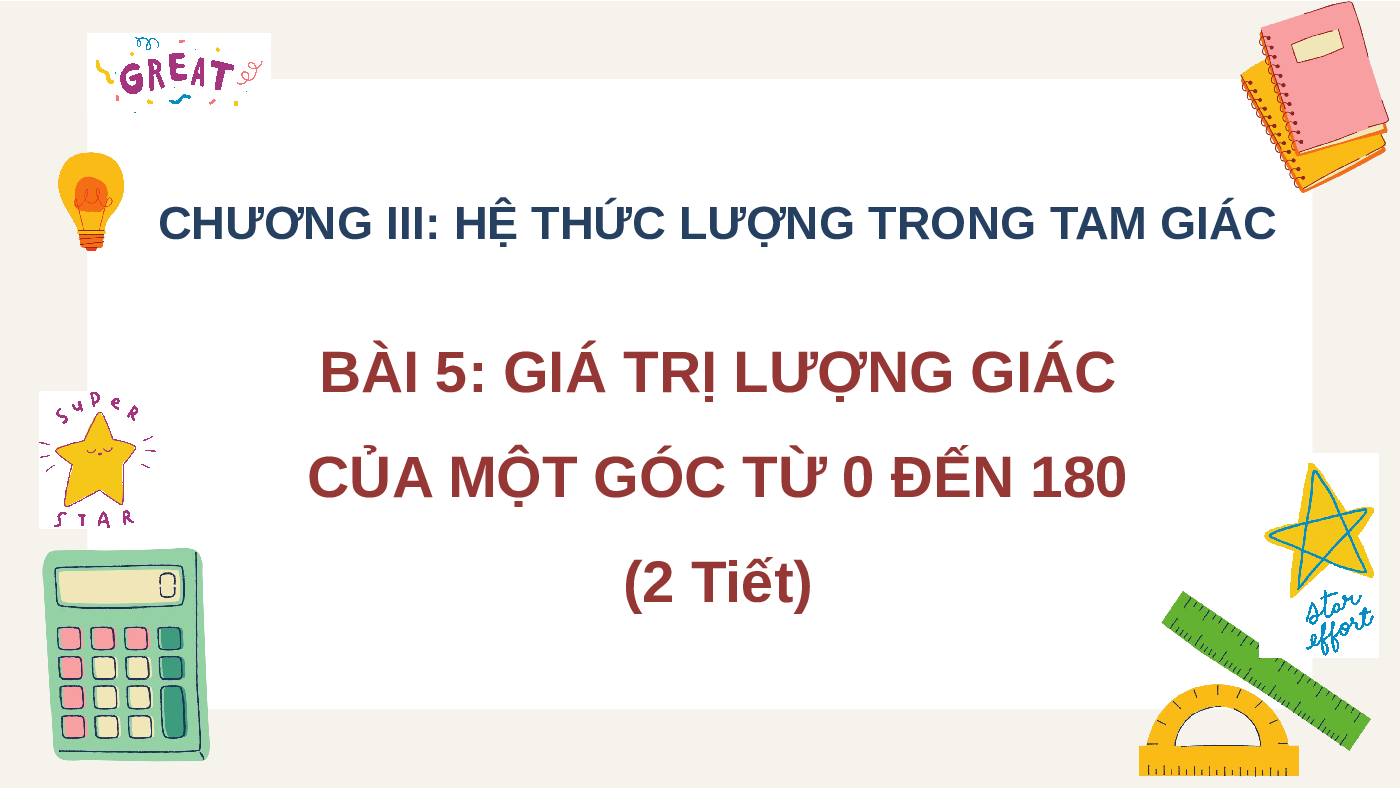CỦA MỘT GÓC TỪ 0 ĐẾN 180 (2 Tiết) NỘI DUNG BÀI HỌC