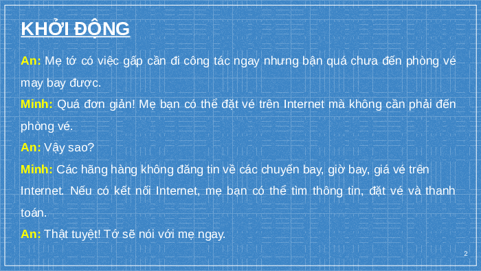An: Thật tuyệt! Tớ sẽ nói với mẹ ngay. 2 BÀI 5. INTERNET NỘI DUNG BÀI HỌC: Tìm hiểu Internet
