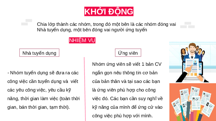 Nhà tuyển dụng, một bên đóng vai người ứng tuyển NHIỆM VỤ Nhà tuyển dụng Ứng viên