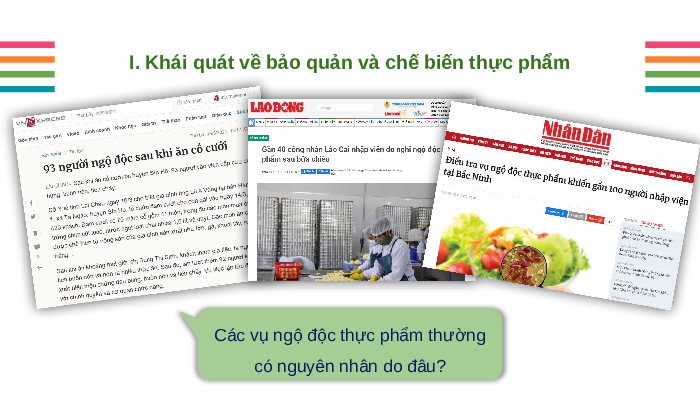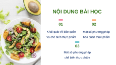 BẢO QUẢN VÀ CHẾ BIẾN THỰC PHẨM NỘI DUNG BÀI HỌC 01 02 Khái quát về bảo quản Một số phương pháp và chế biến thực phẩm bảo quản thực phẩm 03 Một số phương pháp chế biến thực phẩm