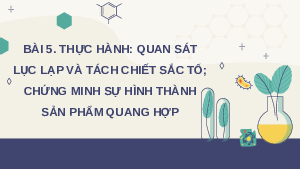 Giáo án Powerpoint Bài 5 Sinh học 11 Chân trời sáng tạo: Thực hành: Quan sát lục lạp và tách chiết sắc tố; chứng minh sự hình thành sản phẩm quang hợp