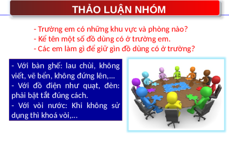 - Các em làm gì để giữ gìn đồ dùng có ở trường?