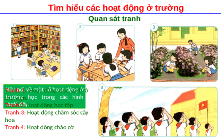 Tìm hiểu các hoạt động ở trường Quan sát tranh Hã Tr y an n h ó i 1 v : ề mộ Hoạtt số độ h n oạ g t đ đọcộn s g ác ở h ở trư h ờ ư n