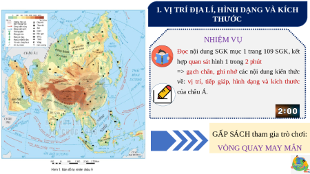 • Trình bày được đặc điểm về vị trí, hình dạng và kích thước của châu Á 1