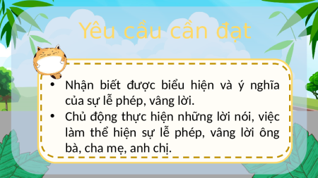 làm thể hiện sự lễ phép, vâng lời ông bà, cha mẹ, anh chị. KHỞI ĐỘNG