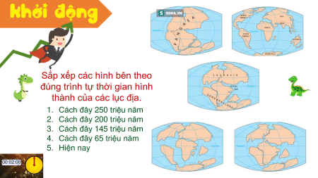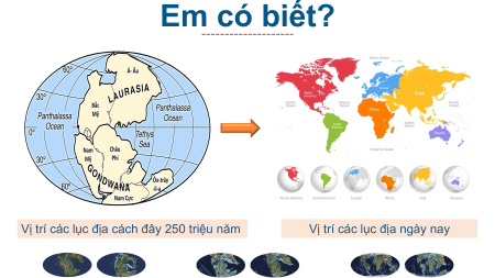 3. Cách đây 145 triệu năm 4. Cách đây 65 triệu năm 5. Hiện nay Khởi động Cách đây 250 triệu năm Cách đây 200 triệu năm Cách đây 145 triệu năm Cách đây 65 triệu năm Hiện nay Em có biết?