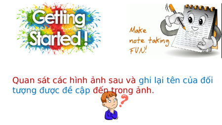 Quan sát các hình ảnh sau và ghi lại tên của đối
