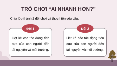 Chia lớp thành 2 đội chơi và thực hiện yêu cầu: Đội 1 Đội 2
