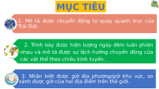 Giáo án Powerpoint Bài 6 Địa lí 6 Cánh diều: Chuyển động tự quay quanh trục của Trái Đất và các hệ quả địa lí