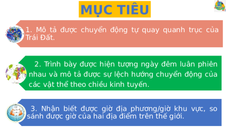 1. Mô tả được chuyển động tự quay quanh trục của Trái Đất.