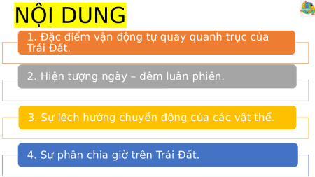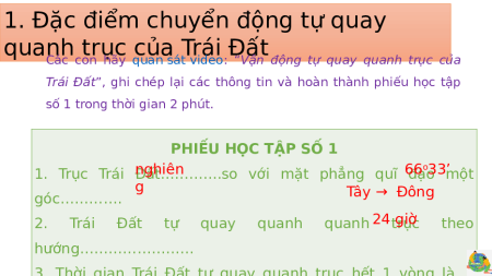 1. Đặc điểm vận động tự quay quanh trục của Trái Đất.