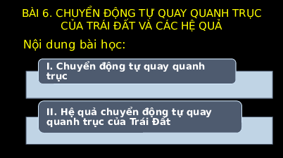 Giáo án Powerpoint Bài 6 Địa lí 6 Chân trời sáng tạo: Chuyển động tự quay quanh trục của Trái Đất và hệ quả