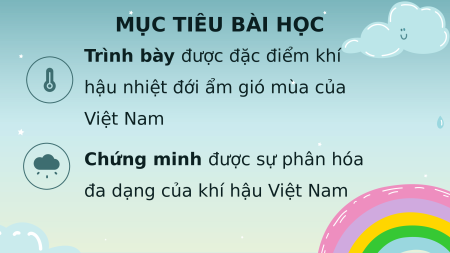 HẬU VÀ THỦY VĂN VIỆT BÀI 6: NAM ĐẶC ĐIỂM KHÍ HẬU MỤC TIÊU BÀI HỌC