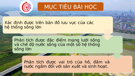 1. Sông ngòi • b. Một số hệ thống sông lớn 2. Hồ đầm 3. Nước ngầm MỤC TIÊU BÀI HỌC