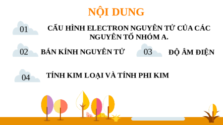 CẤU HÌNH ELECTRON NGUYÊN TỬ CỦA CÁC NGUYÊN TỐ NHÓM A. 02 BÁN KÍNH NGUYÊN TỬ 03 ĐỘ ÂM ĐIỆN 04