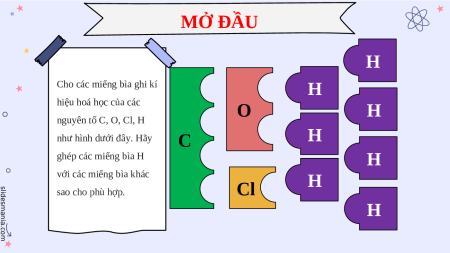 MỞ ĐẦU H Cho các miếng bìa ghi kí H hiệu hoá học của các O H nguyên tố C, O, Cl, H