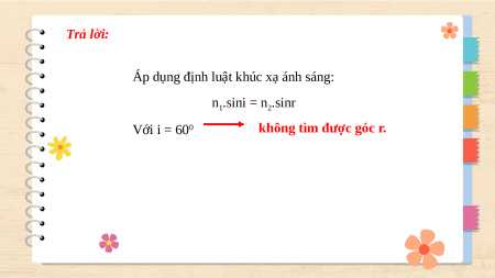 tiếp tục tăng lên tới giá trị 60° thì tia sáng sẽ truyền như thế nào? Trả lời: