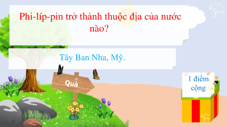 Phi-líp-pin trở thành thuộc địa của nước nào? Tây Ban Nha, Mỹ. 1 điểm cộng