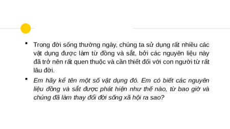 vật dụng được làm từ đồng và sắt, bởi các nguyên liệu này