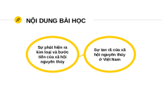 chúng đã làm thay đổi đời sống xã hội ra sao? NỘI DUNG BÀI HỌC Sự phát hiện ra Sự tan rã của xã kim loại và bước hội nguyên thủy tiến của xã hội ở Việt Nam nguyên thủy
