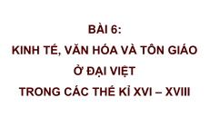 Giáo án Powerpoint Bài 6 Lịch sử 8 Chân trời sáng tạo: Kinh tế, văn hoá và tôn giáo ở Đại Việt trong các thế kỉ XVI - XVIII