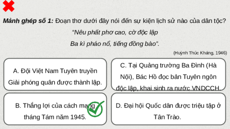 Mảnh ghép số 1: Đoạn thơ dưới đây nói đến sự kiện lịch sử nào của dân tộc?