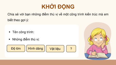 Chia sẻ với bạn những điểm thú vị về một công trình kiến trúc mà em biết theo gợi ý: ▪ Tên công trình: