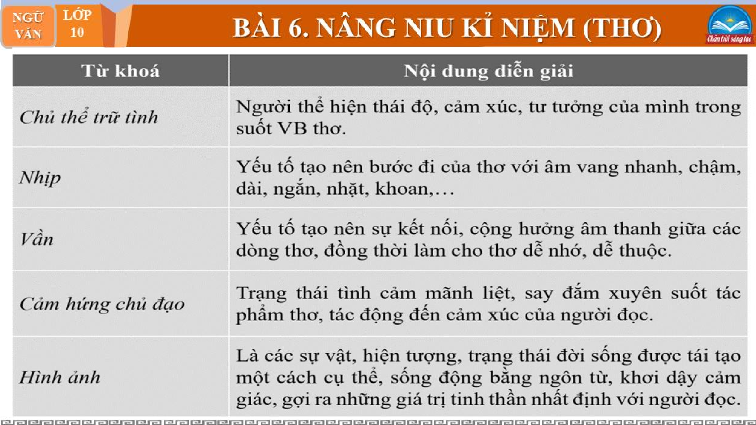 Giáo án Powerpoint Bài 6: Nâng niu kỉ niệm Ngữ văn 10 Chân trời sáng tạo
