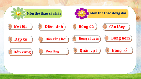 q Chia đôi bảng, mỗi bên gắn hai thẻ “Môn thể thao