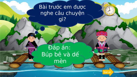 đúng các câu hỏi để xây cầu nhé! CẢM ƠN CÁC BẠN NHÉ! CHÚNG MÌNH SẼ CỐ GẮNG HỌC TỐT, MAI SAU GIÚP NƯỚC NON NHÀ ! Đến bài mới Bài trước em được nghe câu chuyện 54321 0 gì? Đáp án: Búp bê và dế mèn Trở về