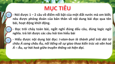 - Nói được 1 – 2 câu về điểm nổi bật của một đất nước mà em biết;