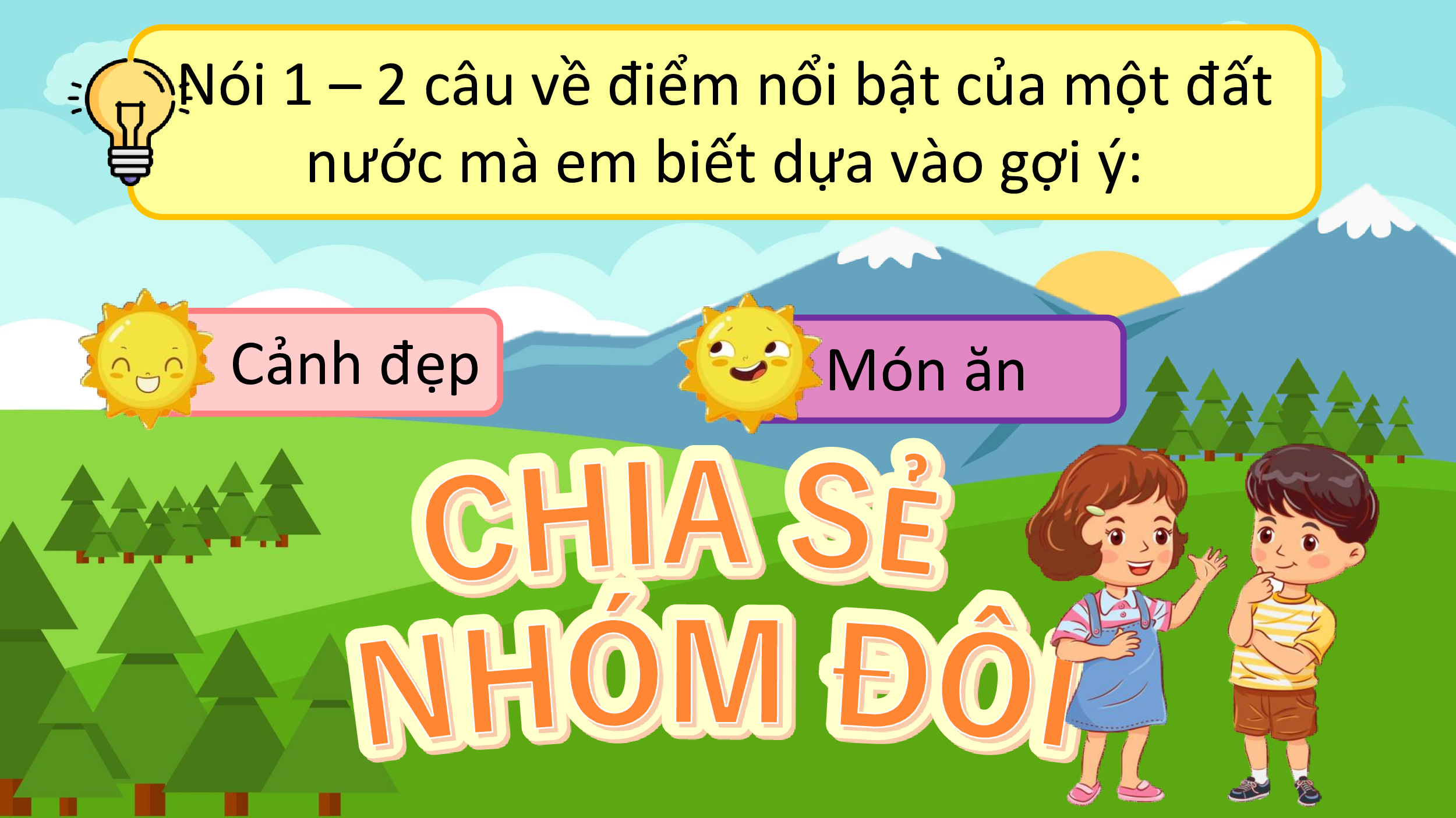 nước mà em biết dựa vào gợi ý: Cảnh đẹp Món ăn CH C I H A I SẺ S NH N Ó H M Ó ĐÔ Đ I Ô