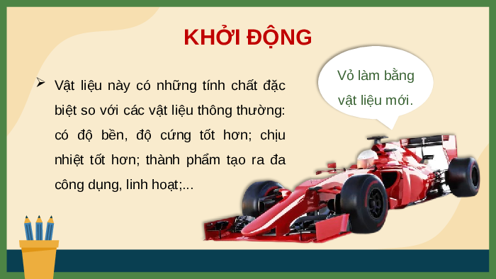 nhiệt tốt hơn; thành phẩm tạo ra đa công dụng, linh hoạt;... BÀI 6: VẬT LIỆU MỚI