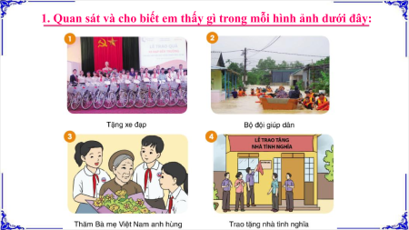 1. Quan sát và cho biết em thấy gì trong mỗi hình ảnh dưới đây: 2. Trao đổi: