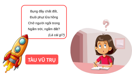 Bụng đầy chất đốt, Đuôi phụt lửa hồng Chở người ngồi trong Ngắm trời, ngắm đất? (Là cái gì?) TÀU VŨ TRỤ