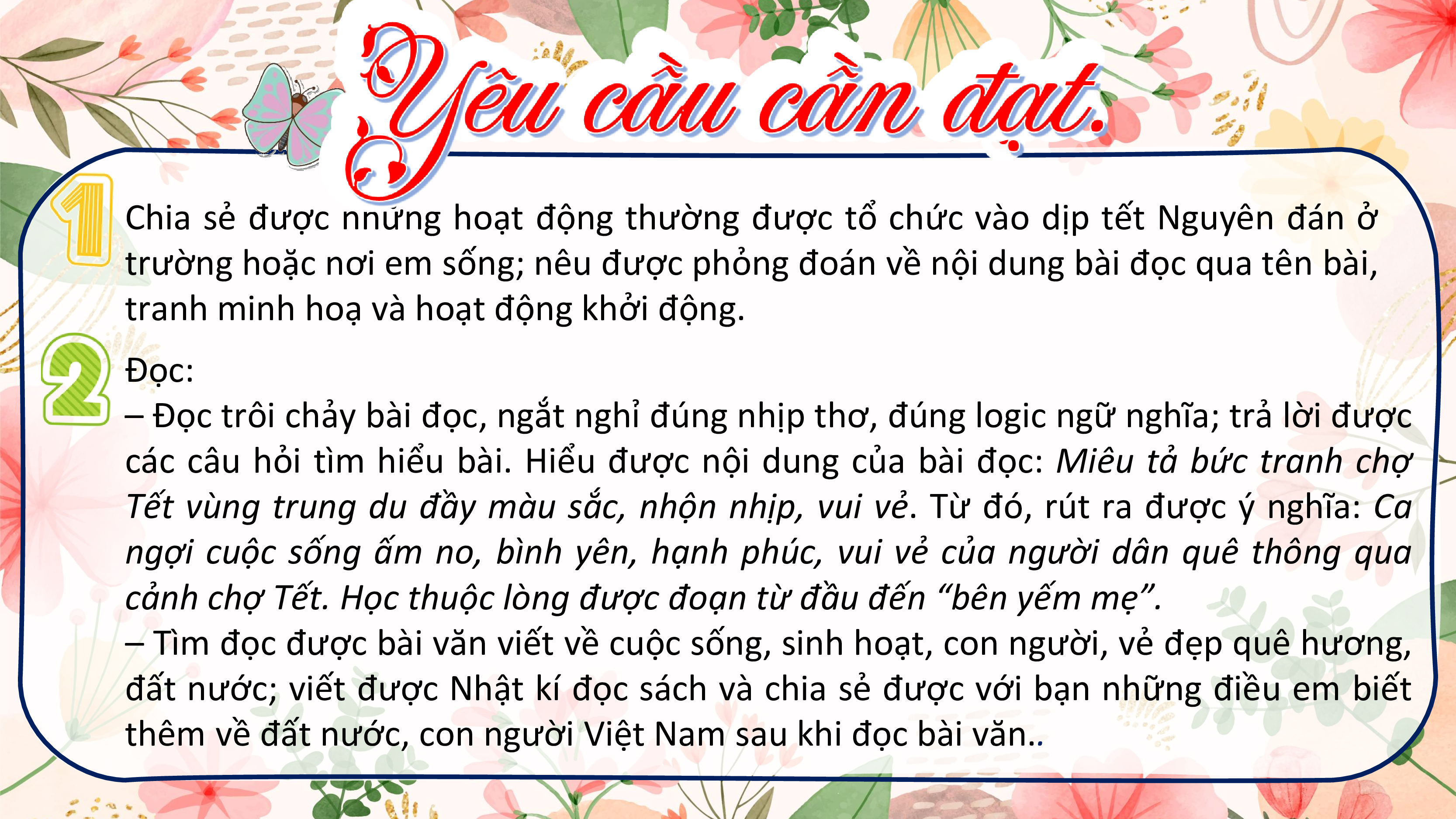 cảnh chợ Tết. Học thuộc lòng được đoạn từ đầu đến “bên yếm mẹ”.