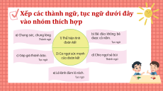 Xếp các thành ngữ, tục ngữ dưới đây vào nhóm thích hợp TRÒ CHƠI “TIẾP SỨC”