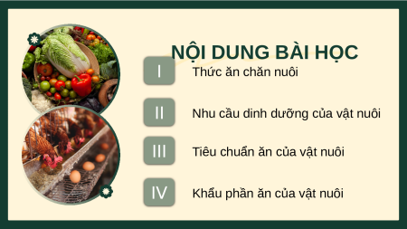 Giáo án Powerpoint Bài 7 Công nghệ chăn nuôi 11 Kết nối tri thức: Thức ăn và nhu cầu dinh dưỡng của vật nuôi
