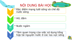 • Đặc điểm mạng lưới sông và chế độ I nước sông • Hồ, đầm II • Nước ngầm III