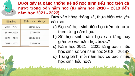 - Bộ bài giảng điện tử Toán lớp 5 Chân trời sáng tạo Học kì 1 năm 2024 mới, chuẩn nhất được thiết kế theo phong cách hiện đại, đẹp mắt, trình bày chi tiết cho từng bài học và bám sát chương trình Sách giáo khoa Toán lớp 5 Chân trời sáng tạo.