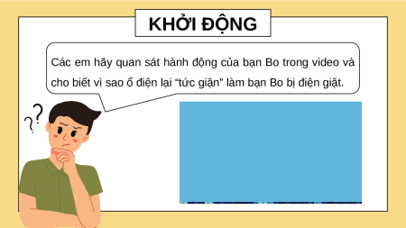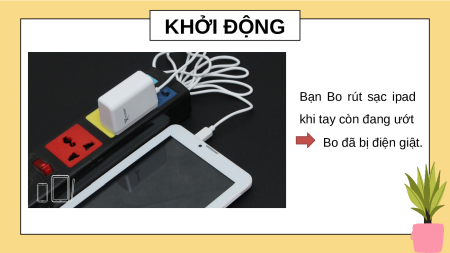 cho biết vì sao ổ điện lại “tức giận” làm bạn Bo bị điện giật. KHỞI ĐỘNG Bạn Bo rút sạc ipad khi tay còn đang ướt Bo đã bị điện giật. BÀI 7. NĂNG LƯỢNG ĐIỆN