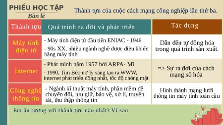 Thành tựu của cuộc cách mạng công nghiệp lần thứ ba.