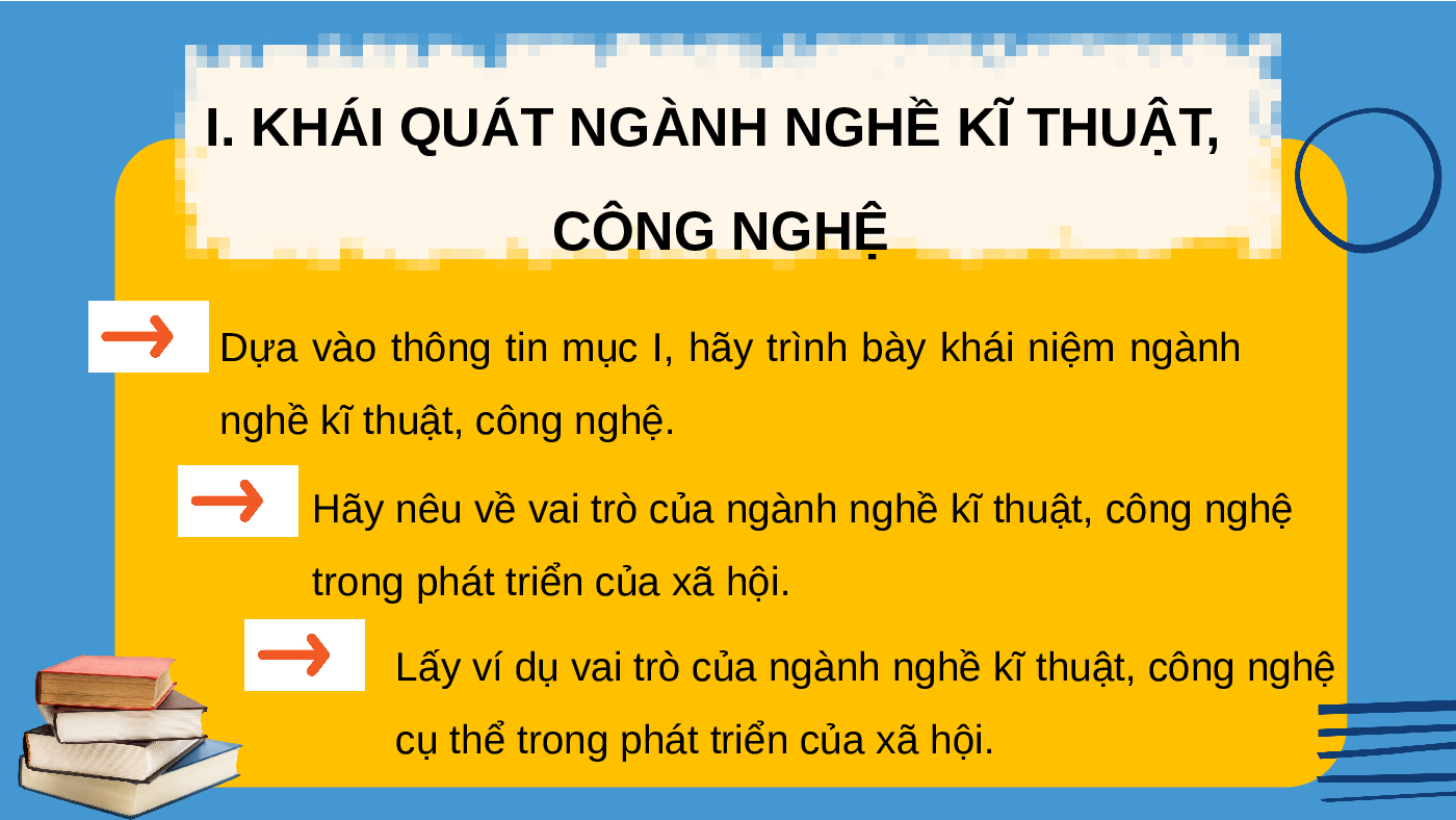 I. Khái quát ngành nghề kĩ thuật, công nghệ NỘI DUNG BÀI HỌC
