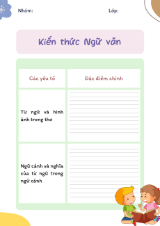 Nhóm: Lớp: Kiến thức Ngữ văn Các yếu tố Đặc điểm chính Từ ngữ và hình ảnh trong thơ Ngữ cảnh và nghĩa của từ ngữ trong ngữ cảnh