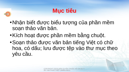 •Nhận biết được biểu tượng của phần mềm soạn thảo văn bản.