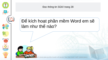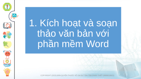 COPYRIGHT (2023) BẢN QUYỀN THUỘC VỀ GIA SƯ TẬN TÂM PHAN THIẾT (0899010822) 1. Kích hoạt và soạn thảo văn bản với phần mềm Word