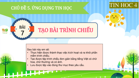 CHỦ ĐỀ 5. ỨNG DỤNG TIN HỌC BÀI 7 TẠO BÀI TRÌNH CHIẾU Sau bài này em sẽ: